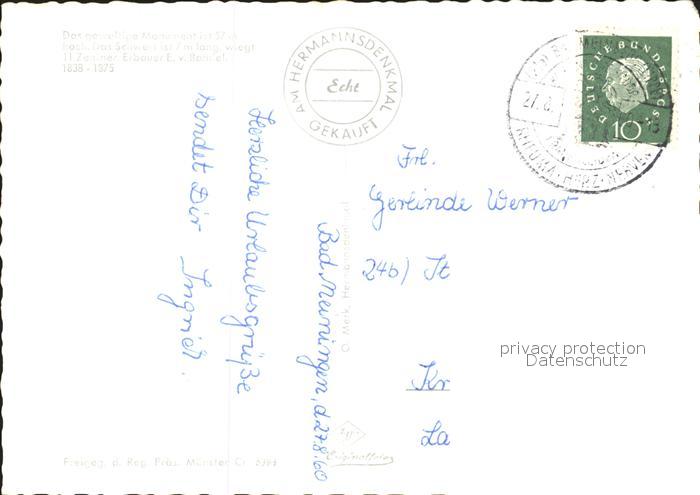 72349934 alte Postkarte Teutoburgerwald Hermannsdenkmal Fliegeraufnahme postalisch gelaufen Erhaltung siehe scans KatCode: 11110005766020