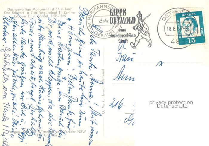 73761191 alte Postkarte Teutoburgerwald Hermannsdenkmal Fliegeraufnahme postalisch gelaufen Erhaltung siehe scans [WerneD78] KatCode: 11110005766020