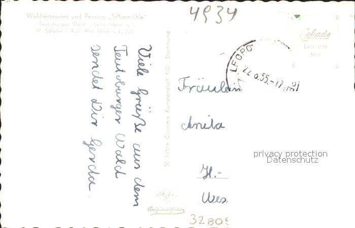 71929809 alte Postkarte Teutoburgerwald Waldrestaurant Pension Silbermuehle postalisch gelaufen Erhaltung siehe scans KatCode: 11110005766020