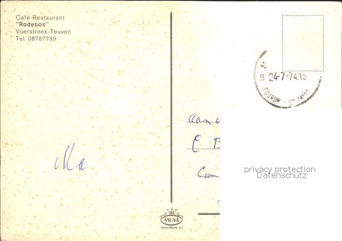 72155456 carte postale Teuven Cafe Restaurant Rodebos postalisch gelaufen Erhaltung siehe scans KatCode: 11070073008637