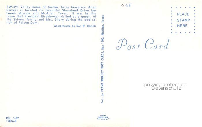 73051237 Texas City Home Governor Allan Shivers postalisch nicht gelaufen Erhaltung siehe scans [KathaD81] KatCode: 14140460000000