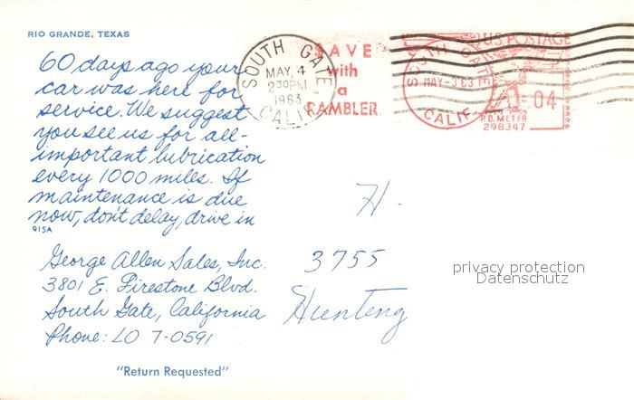 73061562 old postcard Texas US-State Rio Grande postalisch gelaufen Erhaltung siehe scans [WerneD78] KatCode: 14140460000000
