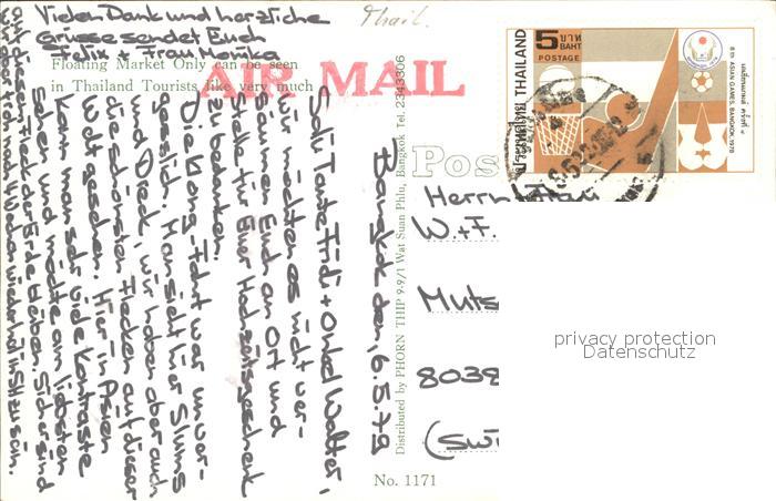 old postcard Thailand Floating Market postalisch gelaufen Erhaltung siehe scans
