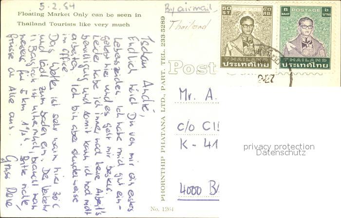 old postcard Thailand Floating Market postalisch gelaufen Erhaltung siehe scans