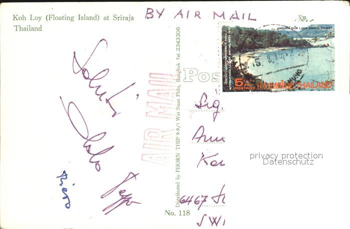 alte Postkarte Thailand Koh Loy at Sriraja postalisch gelaufen Erhaltung siehe scans [WerneD78 kt117box]