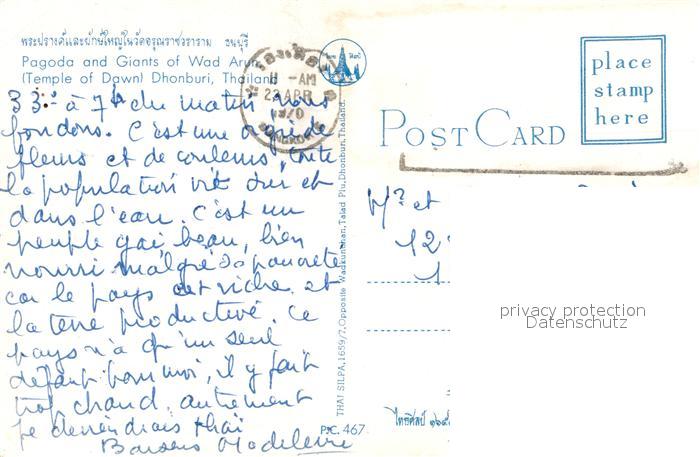 old postcard Thailand Pagode and Giants of Wad Arum Temple of Dawn Dhonburi postalisch gelaufen Erhaltung siehe scans [LiesaD40]