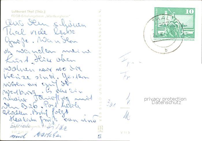 72076989 alte Postkarte Thal Ruhla FDGB Erholungsheim Wartburgheim postalisch gelaufen Mini-AK Erhaltung siehe scans KatCode: 11110016063066
