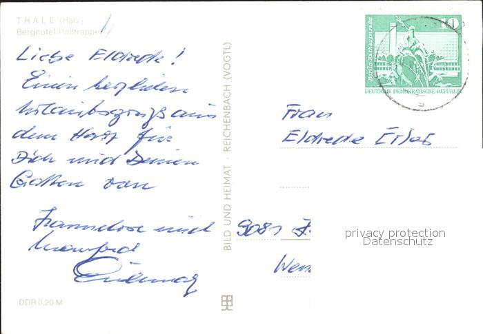 72328284 alte Postkarte Thale Harz Berghotel Rosstrappe Aussichtsplattform postalisch gelaufen Erhaltung siehe scans KatCode: 11110015085330