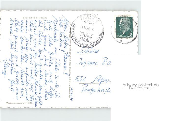 72921811 alte Postkarte Thale Harz Fliegeraufnahme postalisch gelaufen Erhaltung siehe scans [NatalD47] KatCode: 11110015085330