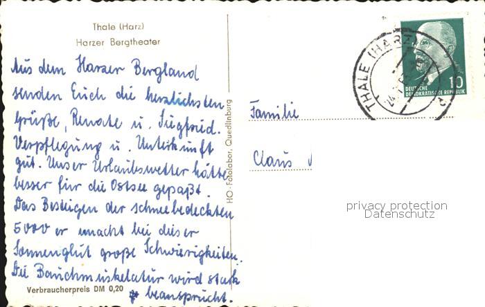72395594 alte Postkarte Thale Harz Harzer Bergtheater postalisch gelaufen Erhaltung siehe scans KatCode: 11110015085330