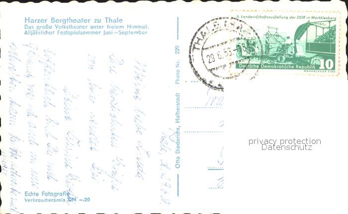 72364991 alte Postkarte Thale Harz Harzer Bergtheater postalisch gelaufen Erhaltung siehe scans KatCode: 11110015085330