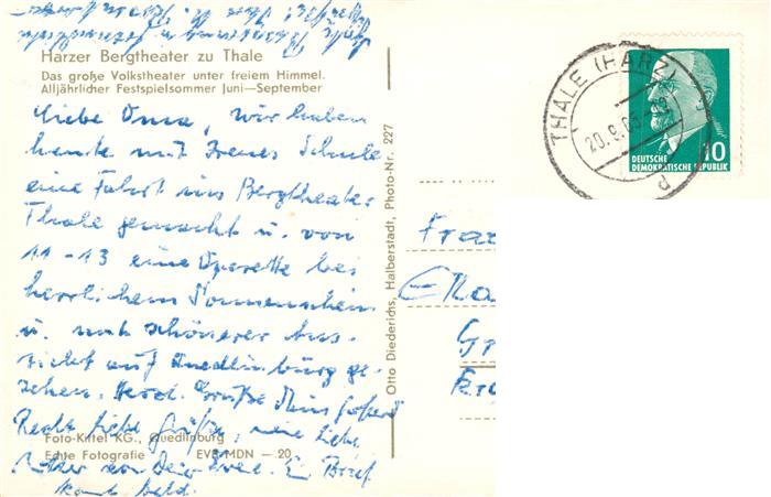 73899399 alte Postkarte Thale Harz Harzer Bergtheater Festspiele postalisch gelaufen Erhaltung siehe scans [WerneD78] KatCode: 11110015085330