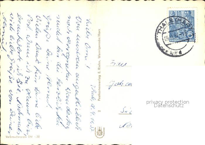 72406025 alte Postkarte Thale Harz Hubertusstrasse postalisch gelaufen Erhaltung siehe scans KatCode: 11110015085330