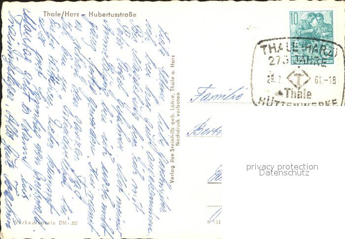72331276 alte Postkarte Thale Harz Hubertusstrasse postalisch gelaufen Erhaltung siehe scans KatCode: 11110015085330