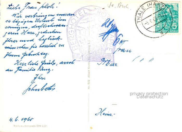 73096653 alte Postkarte Thale Harz Hubertusstrasse postalisch gelaufen Erhaltung siehe scans [LiesaD40] KatCode: 11110015085330