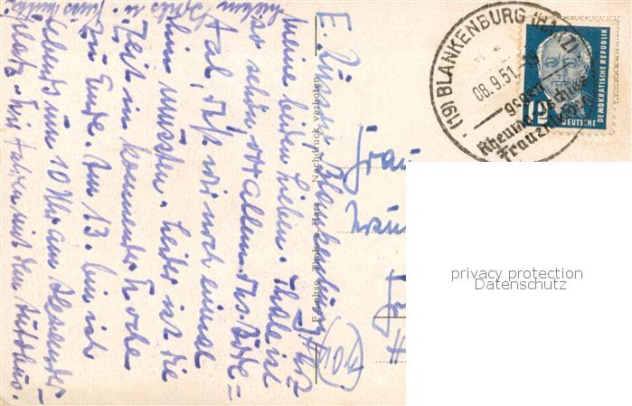 73753430 alte Postkarte Thale Harz Hubertusstrasse Blick zur Kirche postalisch gelaufen Erhaltung siehe scans [FriedD77] KatCode: 11110015085330
