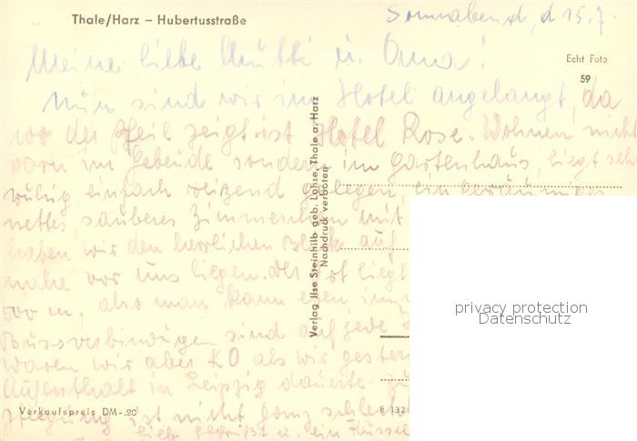 73750908 Thale Harz Hubertusstrasse postalisch nicht gelaufen Erhaltung siehe scans [WerneD78] KatCode: 11110015085330