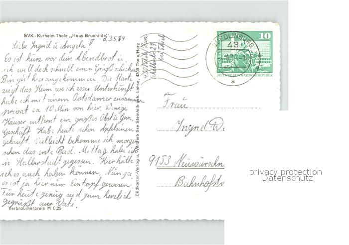 71964101 Thale Harz Kurheim Haus Brunhilde postalisch nicht gelaufen Erhaltung siehe scans Alte Ansichtskarte Postkarte Matt Katcode 11110015085330