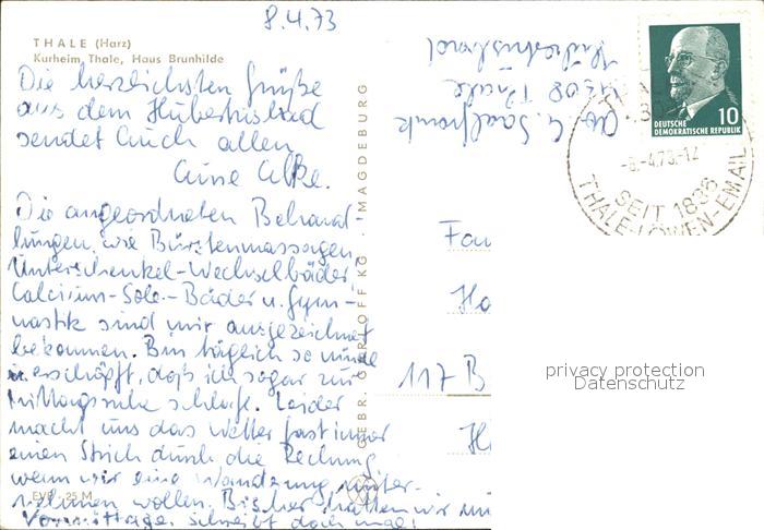 71989744 alte Postkarte Thale Harz Kurheim Thale Haus Brunhilde postalisch gelaufen Erhaltung siehe scans KatCode: 11110015085330