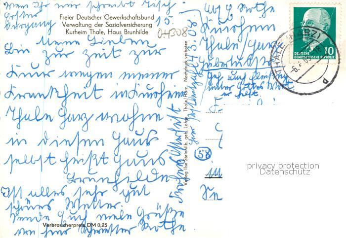 73870263 alte Postkarte Thale Harz Kurheim Thale Haus Brunhilde postalisch gelaufen Erhaltung siehe scans [WerneD78] KatCode: 11110015085330
