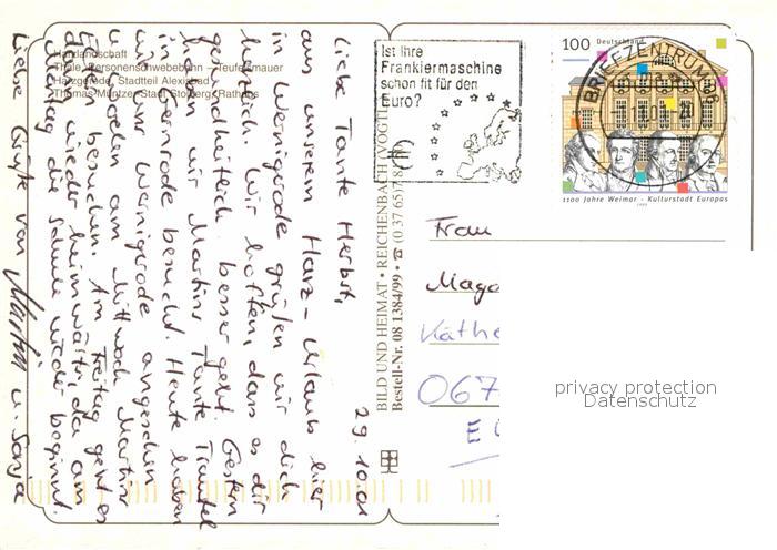 72696693 alte Postkarte Thale Harz Landschaftspanorama Personenschwebebahn Teufelsmauer Harzgerode Alexisbad Thomas Muentzer Stadt Stolberg Rathaus postalisch gelaufen Erhaltung siehe scans [FriedD77] KatCode: 11110015085330