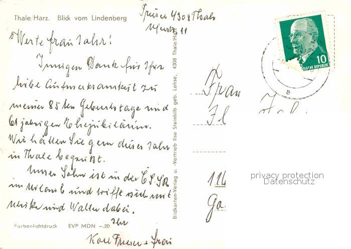 72713209 alte Postkarte Thale Harz Panorama Blick vom Lindenberg postalisch gelaufen Erhaltung siehe scans [FriedD77] KatCode: 11110015085330
