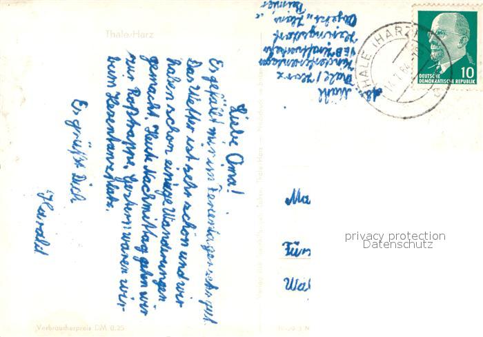 73675853 alte Postkarte Thale Harz Panorama Blick vom Lindenberg Steinbachtal Klubhaus Garten Fontaene postalisch gelaufen Erhaltung siehe scans [FriedD77] KatCode: 11110015085330