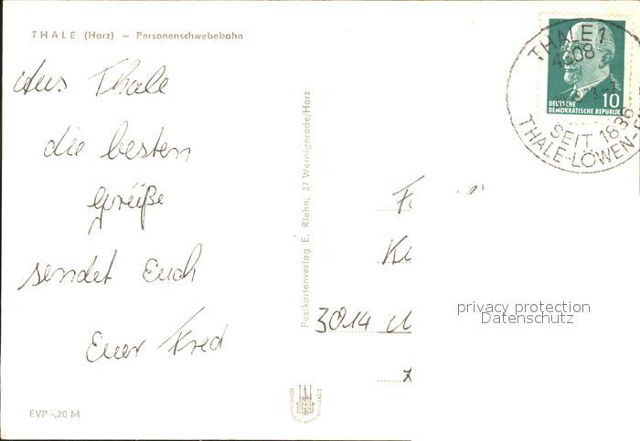 71970689 alte Postkarte Thale Harz Personenschwebebahn postalisch gelaufen Erhaltung siehe scans KatCode: 11110015085330
