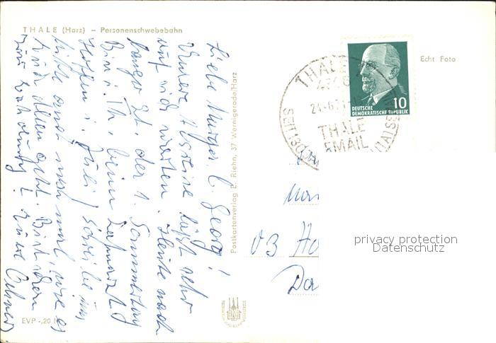 72443331 alte Postkarte Thale Harz Personenschwebebahn postalisch gelaufen Erhaltung siehe scans KatCode: 11110015085330