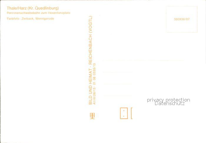 72372111 Thale Harz Personenschwebebahn zum Hexentanzplatz postalisch nicht gelaufen Erhaltung siehe scans KatCode: 11110015085330