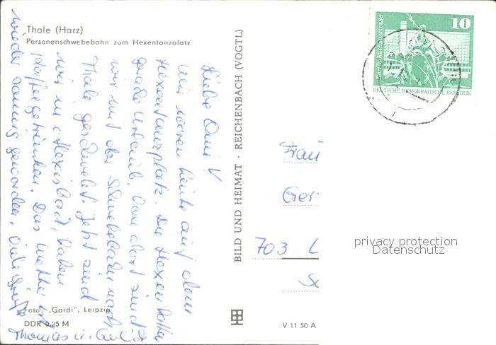 71899646 alte Postkarte Thale Harz Personenschwebebahn zum Hexentanzplatz postalisch gelaufen Erhaltung siehe scans KatCode: 11110015085330
