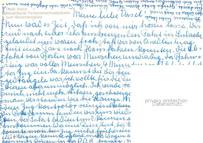 73142275 alte Postkarte Thale Harz Personenschwebebahn zum Hexentanzplatz postalisch gelaufen Erhaltung siehe scans [WerneD78] KatCode: 11110015085330