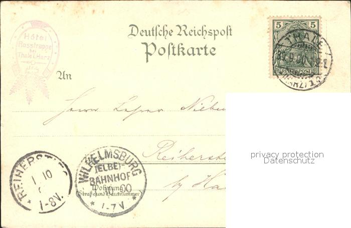 71678648 alte Postkarte Thale Harz Rosstrappe Felsen Hotel Hufeisen Hirsch Bodetal Teufelsbruecke postalisch gelaufen Erhaltung siehe scans KatCode: 11110015085330