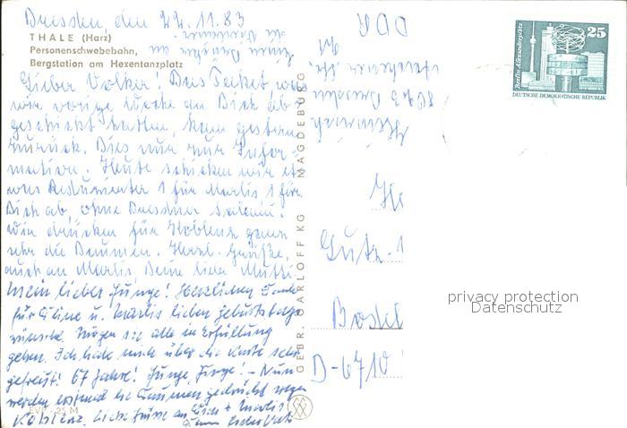 72091724 alte Postkarte Thale Harz Schwebebahn Bergstation am Hexentanzplatz postalisch gelaufen Erhaltung siehe scans KatCode: 11110015085330