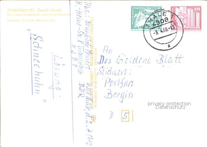 72377850 alte Postkarte Thale Harz Schwebebahn Hexentanzplatz postalisch gelaufen Erhaltung siehe scans KatCode: 11110015085330