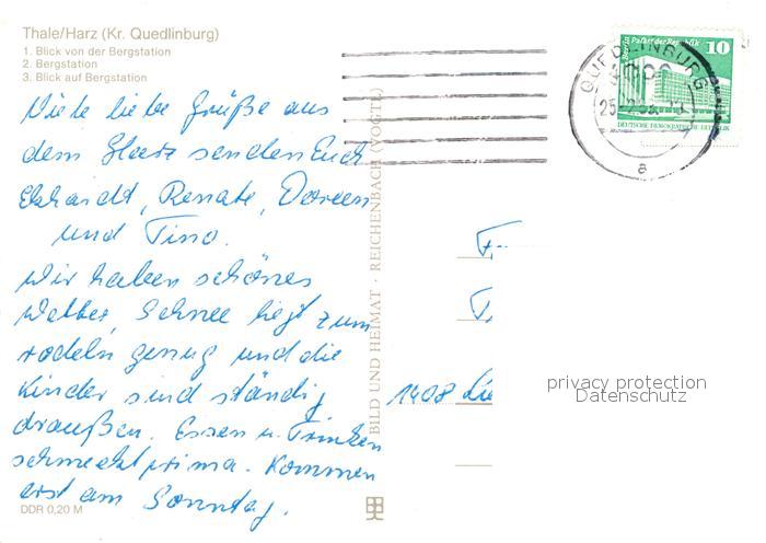 73125150 alte Postkarte Thale Harz Seilbahn Bergstation postalisch gelaufen Erhaltung siehe scans [PaolaD17] KatCode: 11110015085330