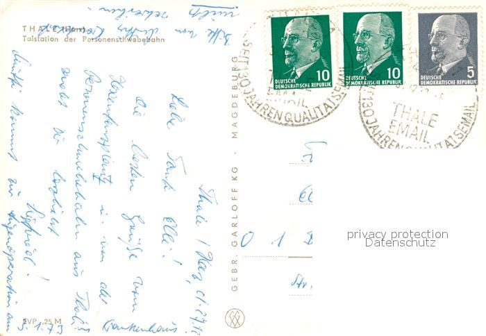 72939040 alte Postkarte Thale Harz Talstation der Personenschwebebahn postalisch gelaufen Erhaltung siehe scans [NatalD47] KatCode: 11110015085330