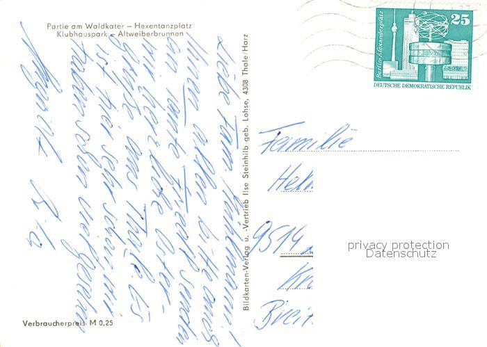 73099187 alte Postkarte Thale Harz Waldkater Hexentanzplatz Klubhauspark postalisch gelaufen Erhaltung siehe scans [KathaD81] KatCode: 11110015085330