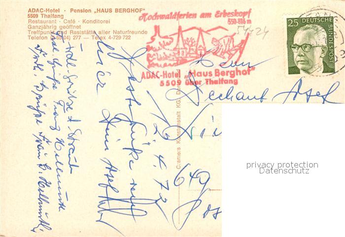 73569517 alte Postkarte Thalfang ADAC Hotel Pension Haus Berghof postalisch gelaufen Erhaltung siehe scans [WerneD78] KatCode: 11110007231123