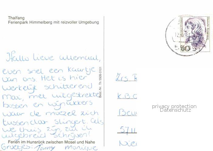 72855937 alte Postkarte Thalfang Ferienpark Himmelberg und Umgebung Wandern im Hunsrueck Wald Weinberge postalisch gelaufen Erhaltung siehe scans [FriedD77] KatCode: 11110007231123