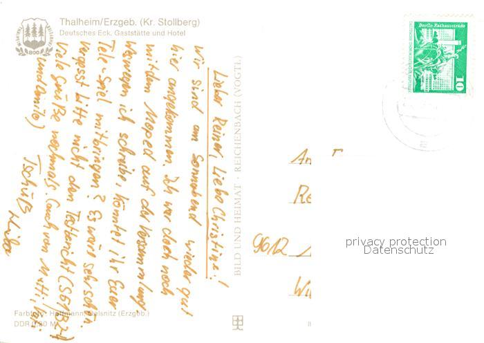 72947338 Thalheim Erzgebirge Deutsches Eck Gaststaette und Hotel postalisch nicht gelaufen Erhaltung siehe scans [WerneD78] KatCode: 11110014188240