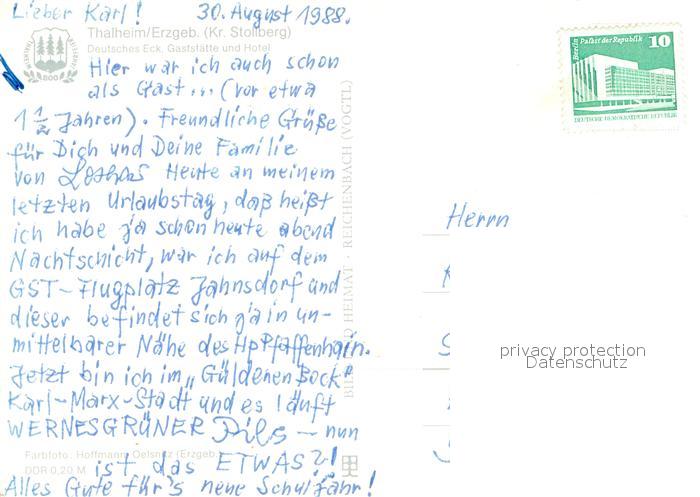 73724357 Thalheim Erzgebirge Gaststaette-Hotel Deutsches Eck postalisch nicht gelaufen Erhaltung siehe scans [LiesaD40] KatCode: 11110014188240