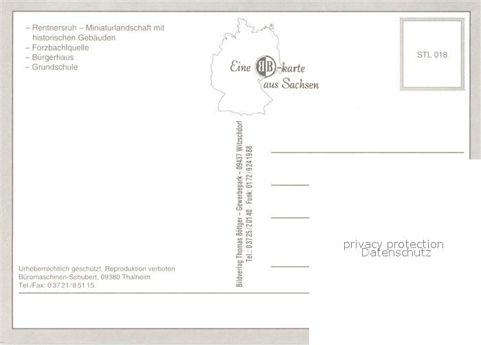 73228972 Thalheim Erzgebirge Rentnersruh Miniaturlandschaft mit historischen Gebaeuden Buergerhaus Forzbachlquelle Grundschule postalisch nicht gelaufen Erhaltung siehe scans [KathaD81] KatCode: 11110014188240