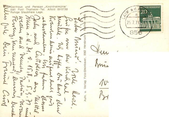 73932692 alte Postkarte Thalheim Mittelfranken Gasthaus Kirchthalmuehle postalisch gelaufen Erhaltung siehe scans [WerneD78] KatCode: 11110009574128