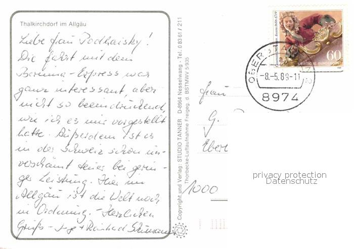 72927915 alte Postkarte Thalkirchdorf Allgaeuer Alpen Fliegeraufnahme postalisch gelaufen Erhaltung siehe scans [FriedD77] KatCode: 11110009780132