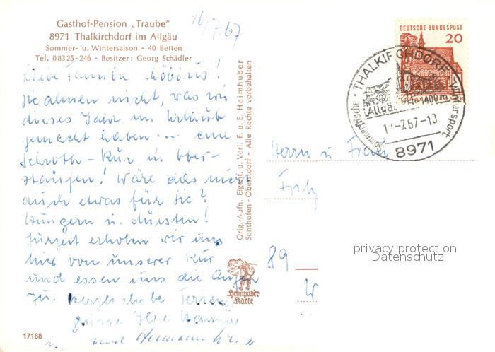 73651677 alte Postkarte Thalkirchdorf Gasthof Pension Traube Restaurant postalisch gelaufen Erhaltung siehe scans [FriedD77] KatCode: 11110009780132