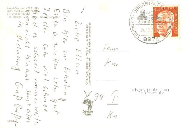 73650963 alte Postkarte Thalkirchdorf Hotel Gasthof Traube Speisesaal Einkehrstube Zirbelstube postalisch gelaufen Erhaltung siehe scans [WerneD78] KatCode: 11110009780132