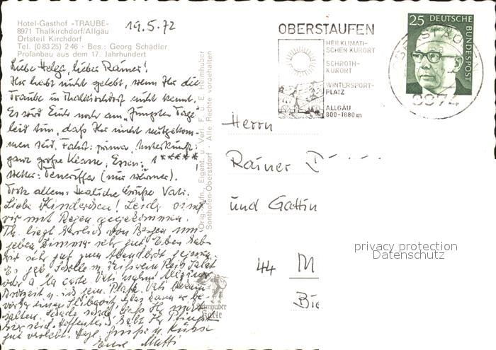 72478696 alte Postkarte Thalkirchdorf Hotel Gasthof Traube postalisch gelaufen Erhaltung siehe scans KatCode: 11110009780132