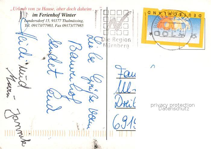 72973999 alte Postkarte Thalmaessing Mittelfranken Ferienhof Winter postalisch gelaufen Erhaltung siehe scans [PaolaD17] KatCode: 11110009576148
