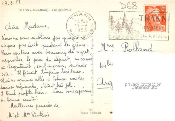 13826338 Thann 68 Alsace Vue Generale et les Vosges postalisch gelaufen Erhaltung siehe scans [FriedD77] carte postale Frie Katcode 11170068668334